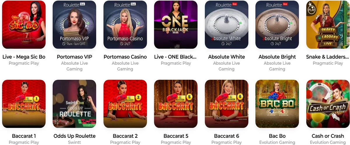 | Live Casino | Evolution Gaming, Ezugi |