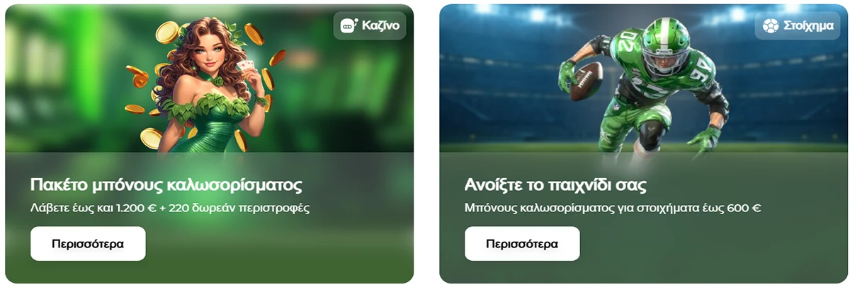 Ξεκινήστε το ταξίδι σας με το πακέτο καλωσορίσματός μας και ανακαλύψτε γιατί χιλιάδες παίκτες μας εμπιστεύονται για την καλύτερη εμπειρία online gaming στην Ελλάδα.