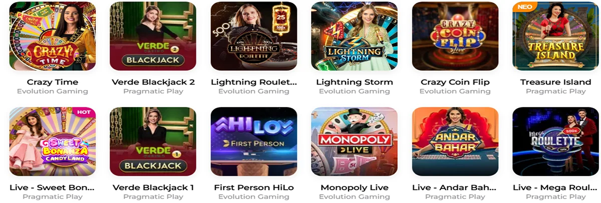 | Pragmatic Play | 15 τίτλοι | Slots, Live Casino |